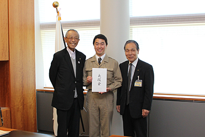 この度の東日本大震災にあたり、被災されました方々には心よりお見舞い申し上げます。 7月の定期回収予定日は 東京都23区内 (毎週月曜日~金曜日) 東京都下 (毎週火・金曜日) 埼玉県 (毎週月曜日~金曜日) 秩父・本庄・児玉地区 7月15日(金) 千葉県 (毎週火曜日・木曜日) 千葉市社会福祉協議会 事業所 7月14日(木)・28日(木) 群馬県 (第2火曜日・第4水曜日) 7月12日(火)・27日(水) 栃木県 (第1火曜日・第3水曜日) 7月5日(火)・20日(水) 宇都宮市社会福祉協議会 7月16日(土) 茨城県 (第2水曜・第4火曜日) 7月13日(水)・26日(火) その他に回収依頼状況に応じました配車を行います。 一人でも多くの方々が無事救出され、不自由な避難生活が一日も早く改善されます事を心よりお祈りいたします 平成23年5月14日 宮城県知事 村井嘉浩様に 義援金1,000万円を首相官邸内にてお渡しいたしました。 エコキャップ推進協会の理事長であられ、内閣特別顧問の笹森氏(写真向かって左)が 6月4日永眠されました。 謹んでお悔やみ申し上げます。